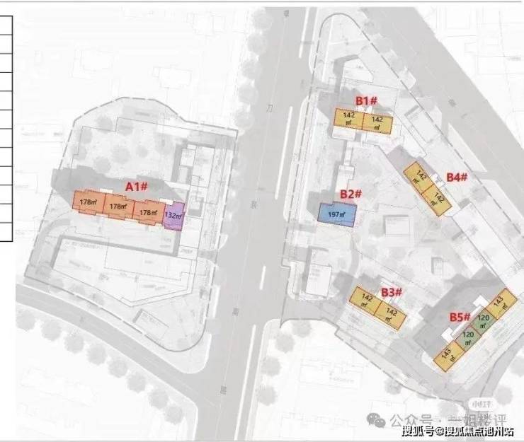 A1号楼为33层的高层住宅,分为两个单元,均是两梯两户,一单元分布户型为建面约132、178平,二单元分布户型为建面约178平四房。