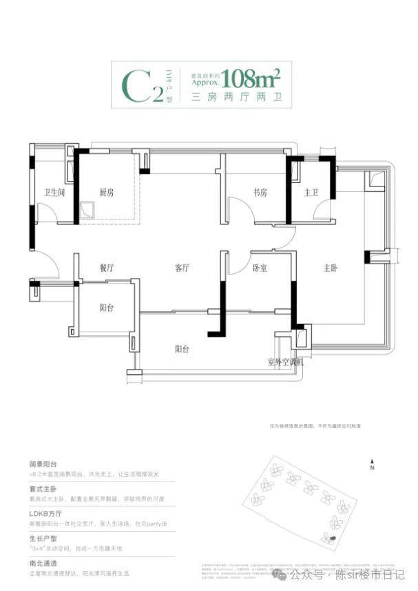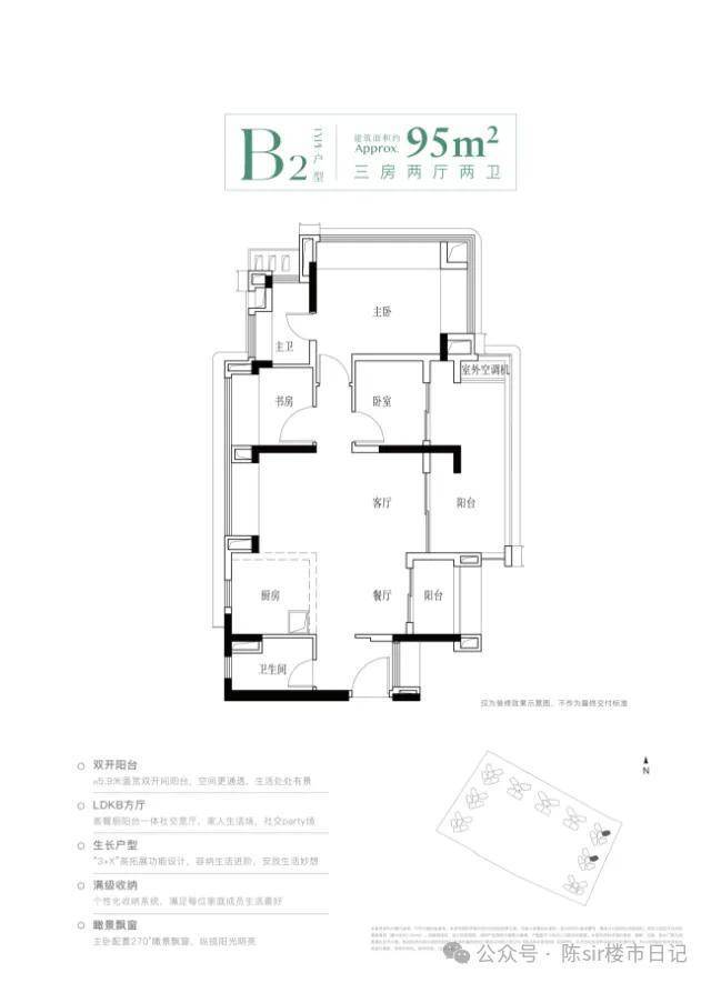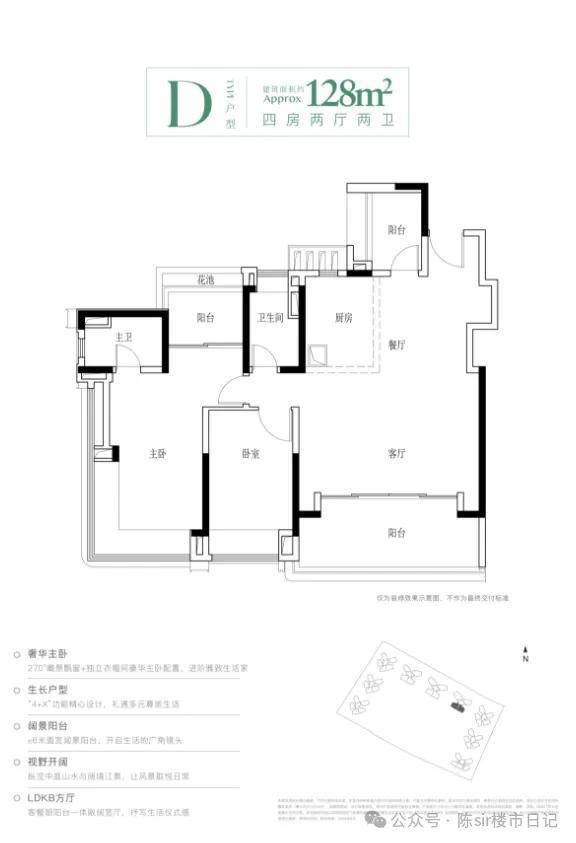 阳台、飘窗、花池赠送,户型使用率超100%;