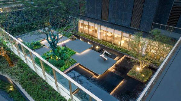 洋房产品带有空中悬浮露台,赠送了很多面积。除了154㎡、185㎡标准层之外;还有一层有连通地下空间的下跃式设计,南向带绿篱围合绿地;二层为157㎡+L型露台+悬浮阳台设计;顶层是两户合一户,为265㎡的大平层。