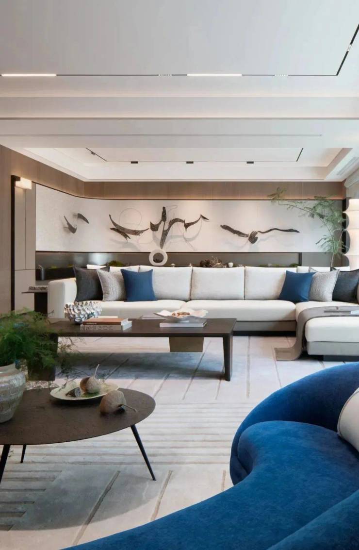 东区建面约320户型,将艺术感进一步融入日常中。特别设计的专属门厅空间,是从电梯厅延伸到家,如同一处艺廊,放慢人的情绪;室内选用了浅金色奢石(外界也称其为“芬迪白大理石”)作为主要的石材,曲面的木饰面也为浅色,整体给人以明亮感。