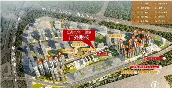 社区内配建27班公办幼儿园和45班九年一贯制公办广外附,均已开学