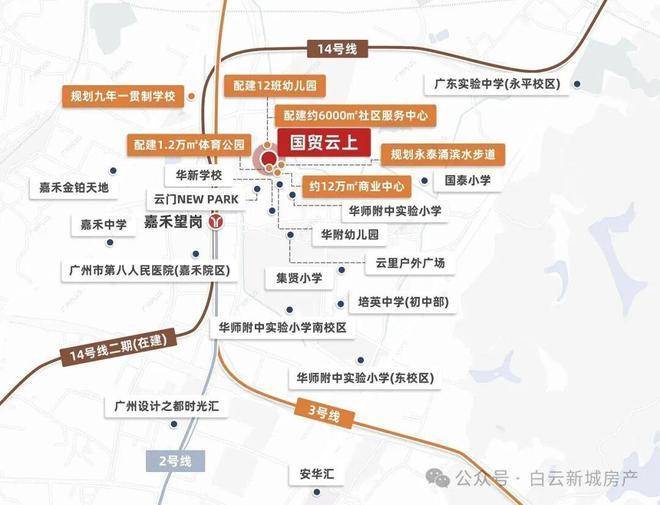 首先来看一下国贸云上这个小区的教育资源,12所学校 3-15岁全龄段全优教育系统,周边11所学校,包括华附幼儿园、华附实验小学、华新学校、培英中学(初中部)、嘉禾中学、广东实验中学(永平校区)等,西北侧规划1所九年一贯制学校,项目自建1所12班幼儿园 .目前没确定的就是这个公立的教育用地到时是那所学校进驻还没有进一步的消息。但是目前项目周边的教育资源还是相对不错的。其次就是毕竟项目要到2026年才交楼,这些也是只能作为参考,最终准确的,具体的学区划分信息以入学当年教育局系统为准!买期房的话,粉丝朋友们还是需要对学位这点保留一定的不确定性。