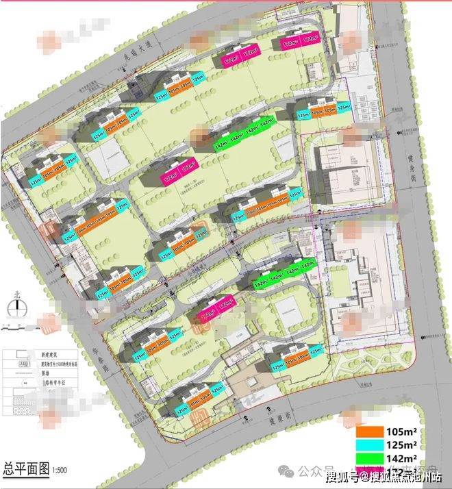 A地块(一期)总用地面积约4万方,居住用地面积约2.86万方,总建筑面积约10.45万方,住宅建面约6.37万方,容积率1.88,总户数约520户。