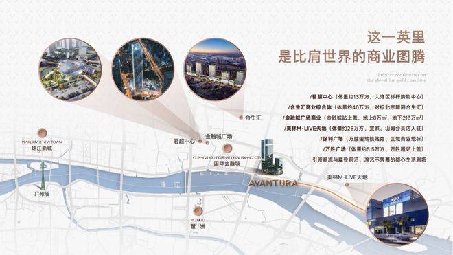 啟江42序AVANTURA地处广州国际金融城东区起点位,这里不仅是科技金融、创新金融及总部经济的重要集聚区,更是全球都会的核心地带之一。该项目不仅享有珠江至贵一英里的独特地理位置,还拥有便捷的交通系统,包括地铁、城际列车、磁悬浮列车以及值机大厅等复合交通枢纽,使居民能够与世界无界畅连。