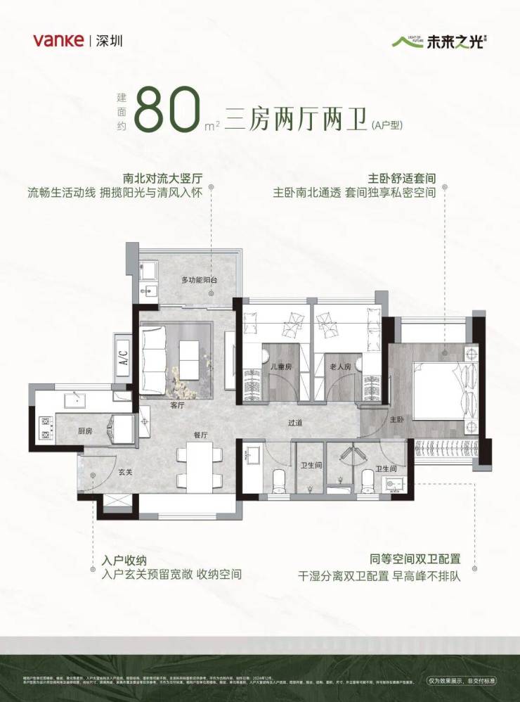 💎建面约80㎡A户型3房2卫