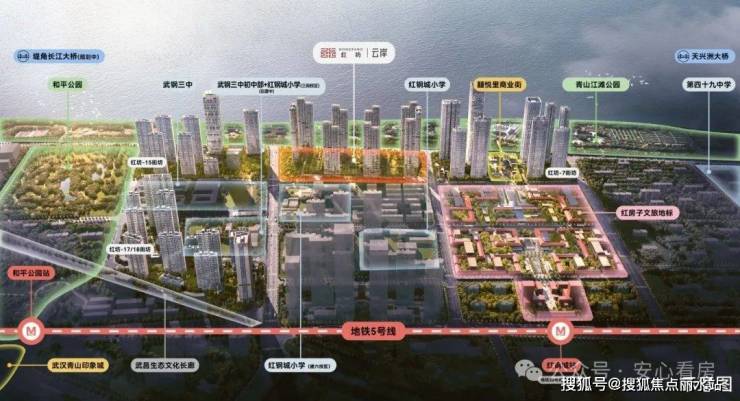 项目自带幼儿园,附近还有红钢城小学,武钢三中等优质学校资源,其中武钢三中初中部预计2024年9月投入使用,与项目直线距离仅约600米。