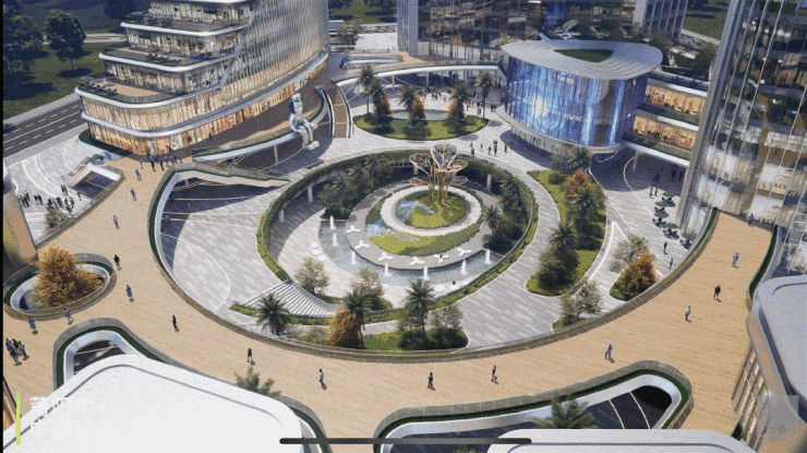 北眺,国际金融 CBD 的现代天际线与莆阳中心的下沉式叠水庭院交相辉映,茶余饭后凭栏远眺,城景与园景的双重盛宴触手可及。一线玉湖风光与莆阳中心地标同框,这样的视野,此后难再复制。