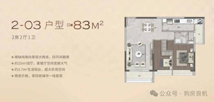 越禧府2号楼03户型83㎡- 超宽楼距四开间南向两房