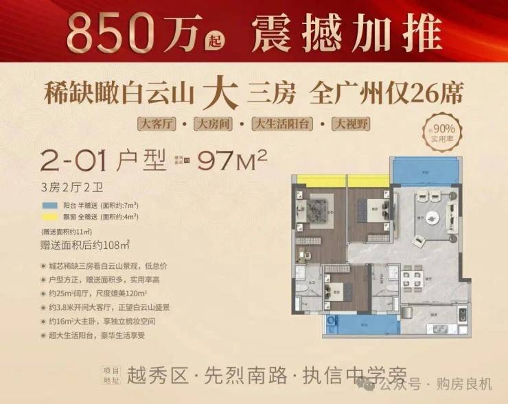 交付标准:参考7星级迪拜帆船酒店,打造越秀区首个帆船造型外立面;全德系厨电、大金中央空调+新风系统组合、视声智能化、精装交标,准现楼今年买今年住