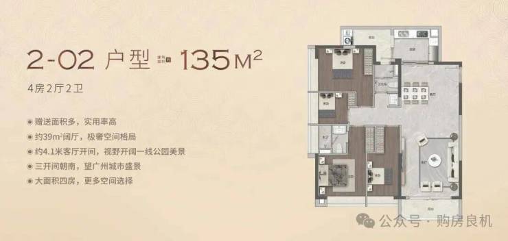 越禧府-2号楼02户型135㎡- 南向改善四房超宽楼距