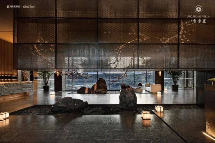 漫步其间,镜面水庭倒映重檐飞角,玻璃幕墙将超山苍翠框成流动的青绿画卷;巨幕玻璃勾勒的宋韵金线建筑,在阳光下与庭院景观相映成辉;约2000 方会所内,空间以 “宋式极简” 为魂,木质格栅透光如宣纸晕染,金属丝线勾勒的艺术装置似梅骨铮铮,与窗外梅林形成虚实相生的诗意对话。