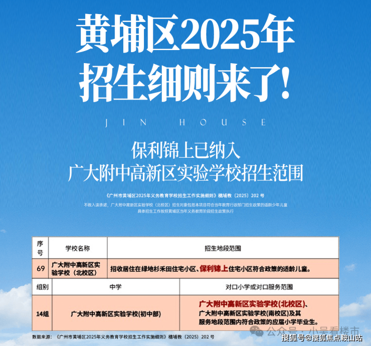 项目自身配建一所12班的幼儿园,根据25年黄埔区招生细则,保利锦上继续被纳入广附高新实验北校区的招生范围内!!最爽的是小学初中就在家门口对面,目送式教育拉满~
