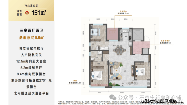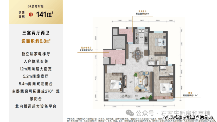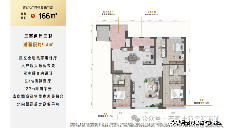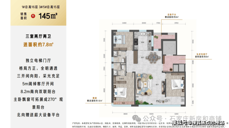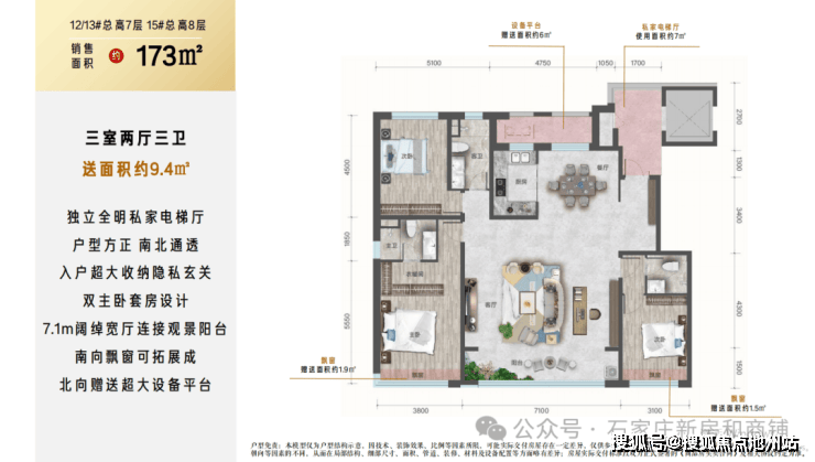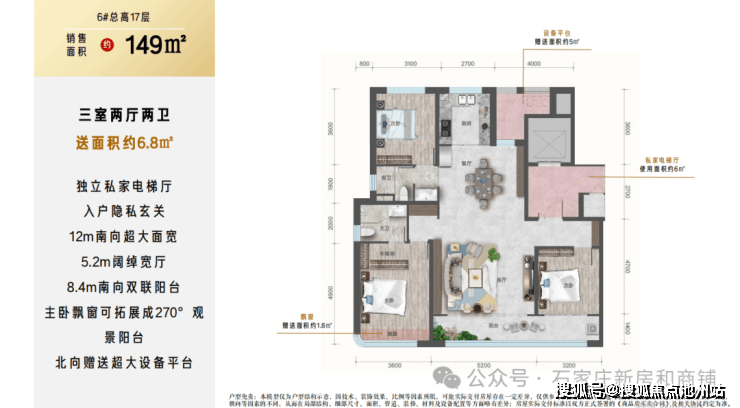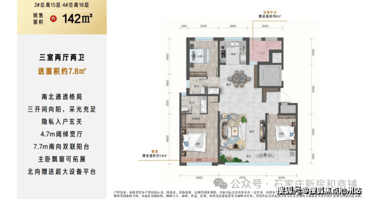6. 但是注意点 :户户有北侧设备平台赠送,南侧飘窗赠送,小高层层高2.95米,洋房层高3.1米