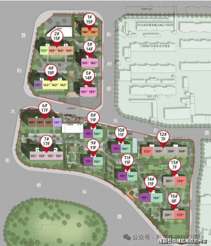 4.楼栋规划:15栋7-18层住宅+2栋配套楼