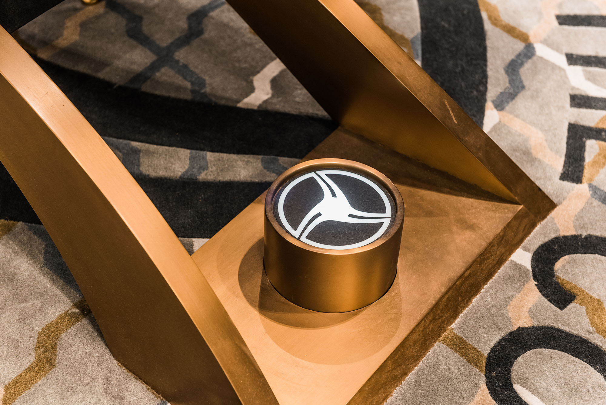 此案设计师凭藉赛勒斯的品牌核心价值形塑出优美高雅的空间,并利用质材与设计上优质展现赛勒斯的经典元素,如透过与表盘装饰相同的三角图型,覆盖店面墙壁;又结合最为知名的Klepcys垂直陀飞轮系列产品特色──陀飞轮作为展示基座,呼应着地板上的圆形logo,将整个空间幻化为触及赛勒斯品牌的精致桥梁。