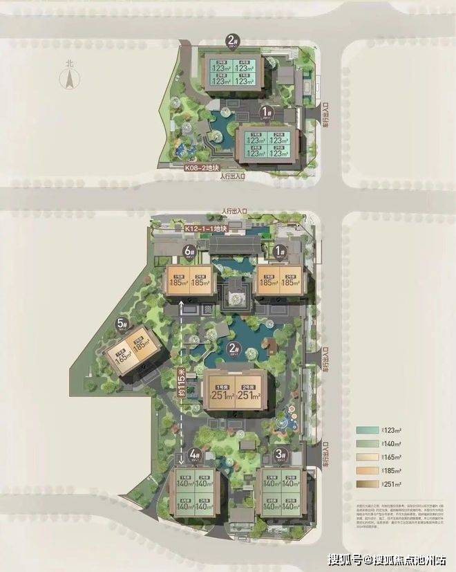 整个小区分成2个地块,小地块全是123平户型,只有2栋,大地块有6栋,有140平、165平、185平、251平4个户型。整体容积率3.0.