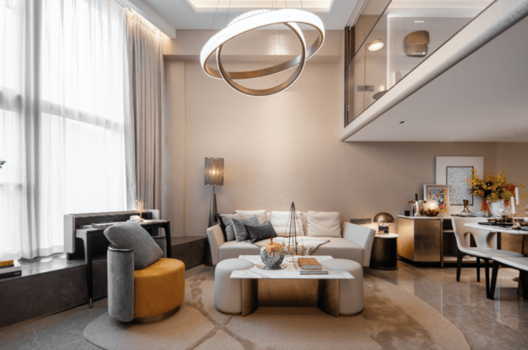 在本次首映的示范区设计中,受邀操刀的SLD梁志天大师以「家外之家」为内核,更注重尺度感和家的温馨感,将之作为“家”的空间延伸去打造。