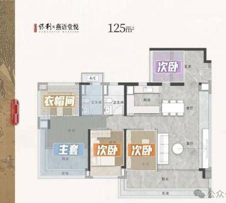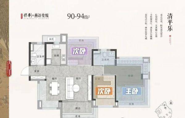 保利燕语堂悦主打90-125平方米的三至四房户型,采用横厅设计、南北通透布局,部分户型配备三个阳台,空间感和采光效果俱佳。具体户型包括: