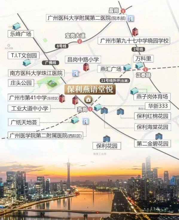 保利燕语堂悦位于广州市海珠区工业大道中,地处珠江后航道旁,是保利集团在海珠西30年后的重磅之作。该项目不仅占据了黄金地段,还拥有丰富的教育资源、成熟的配套设施以及创新的产品设计,成为广州楼市中的“顶流”项目。