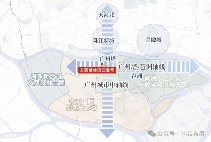 在我看来,和许多“蹭”中轴的项目不同,方圆美林滨江壹号乃是妥妥的中轴C位,而且还在珠江新城-广州塔、广州塔-琶洲两大轴线的交汇处,出生已经躺赢。