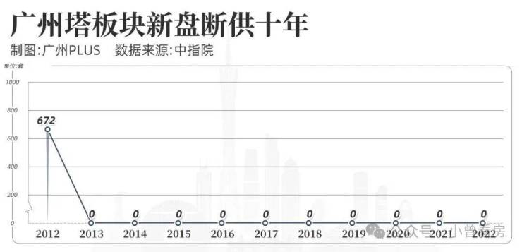 根据中指院数据显示,从2012年开始,广州塔板块便再无新盘入市,这一断供便是足足十年之久。