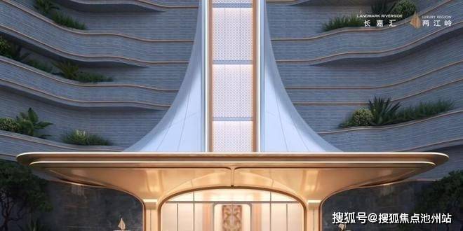 项目主入口设计灵感源自邮轮扬帆的姿态,构筑起超20米的高差,形成一道巍峨的门户,自成边界,既彰显了项目的尊贵与大气,又充满了仪式感。而酒店式的落客归家体验,更是让每一位居住者都能感受到归家的温馨与尊崇。