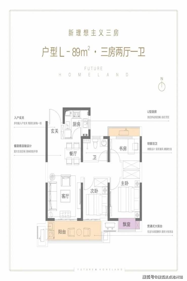 富田城·九鼎华府 平层户型·建面/89㎡