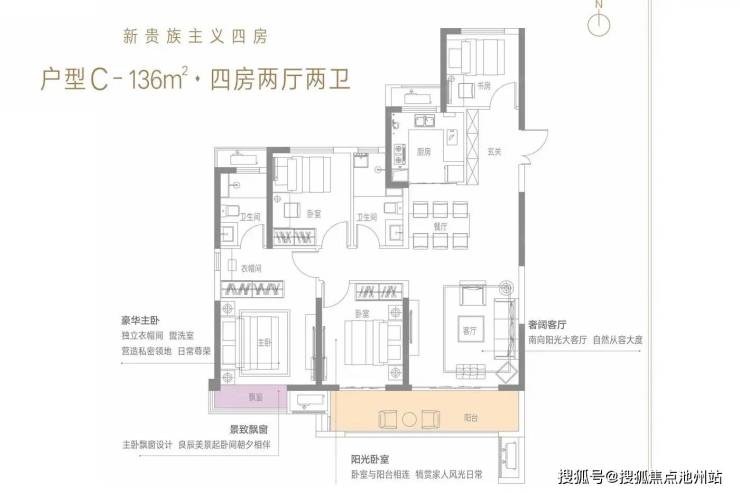 富田城·九鼎华府 平层户型·建面/136㎡