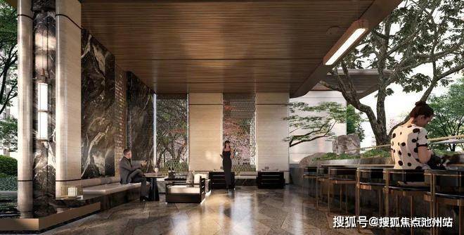 整个项目设计满满酒店风,很有安缦feel。99米宽超大界面门庭,搭配定制米黄大理石。还打造酒店式环岛落客。