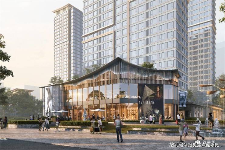 项目特色:打造首座第四代新中式雅宅,以 “安全、舒适、绿色、智能” 四维标准重构人居标杆,外立面为公建化立面,住宅顶部有挑檐设计,社区大门为新中式风格。