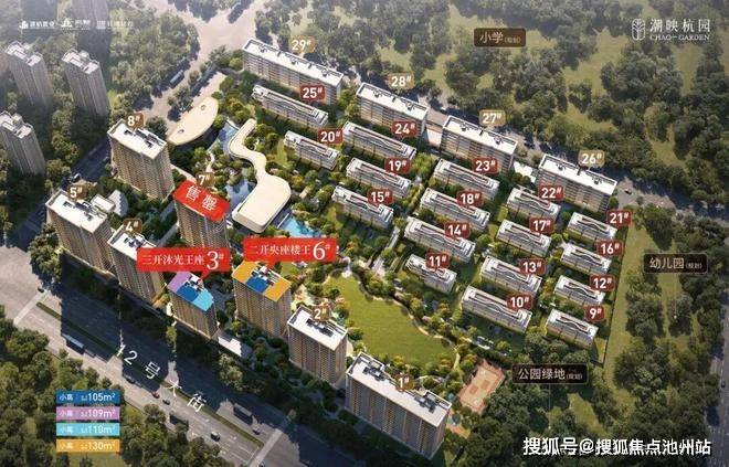 潮映杭园位于钱塘区东部湾新城,开发商是由建杭置业、滨江集团和钱塘建投三大开发商联手打造,项目总户数763 户,容积率2.0,小区由13-17F层小高层+ 7层洋房+ 4层排屋组成,面积为小高层约105-130㎡,洋房约139㎡,排屋约253-323㎡,总价在270万起。