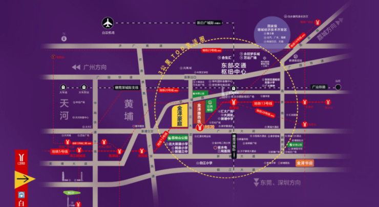 项目直线距离13号线白江地铁站仅700米,步行8分钟可达,由白江站乘坐13号线,2站黄埔,8站天河。