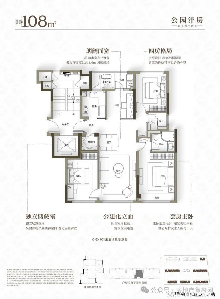【户型面积】洋房建面约108㎡、小高层建面约129-149㎡