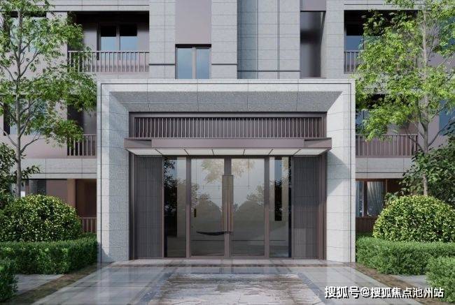 在选材端,单元门头采用石材+金属型材搭配;外立面采用米白色铝板加米白色咖色真石漆涂料搭配,更凸显品质与质感。