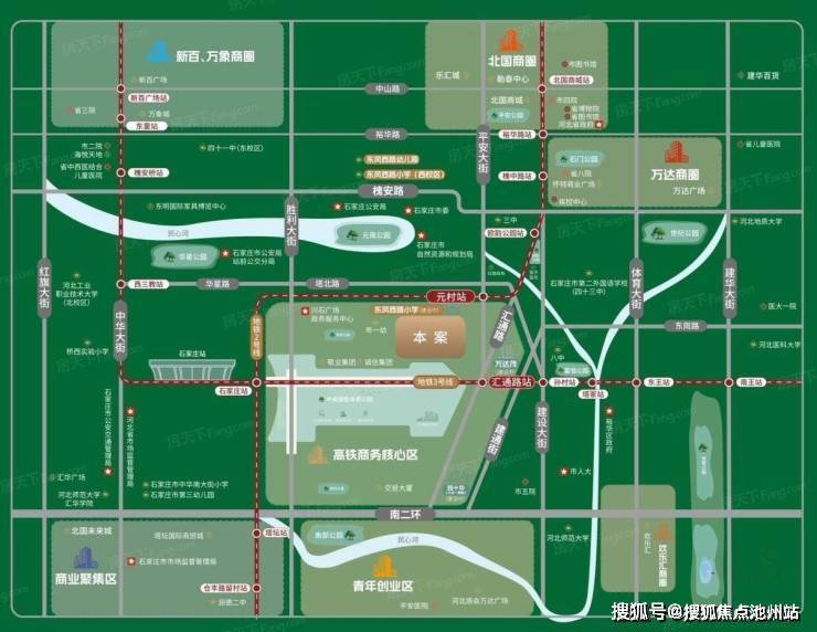 周边直线3km范围内有13个地铁站(元村、汇通路、欧韵公园、孙村、石家庄站、槐中路、塔坛、塔冢、西三教、裕华路、槐安桥、仓丰路留村、东王),轨道交通发达,距离最近的地铁站是元村。