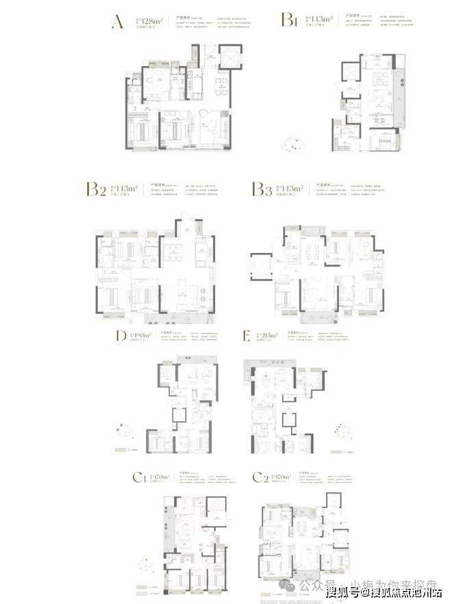 5号楼44层,3梯4户,包含建面约128-175平户型。