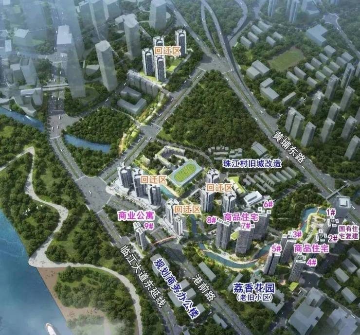 珠江村位于5号线鱼珠与大沙地之间,是老黄埔旧改中,最靠近天河的项目。