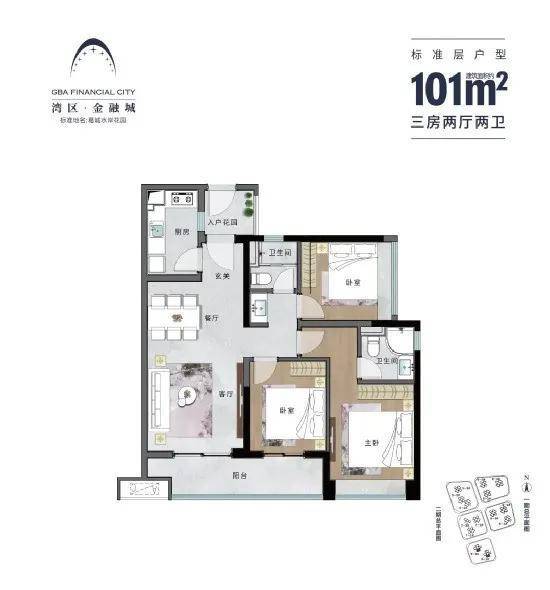 90-101-137-138㎡ 3至4房通透户型|