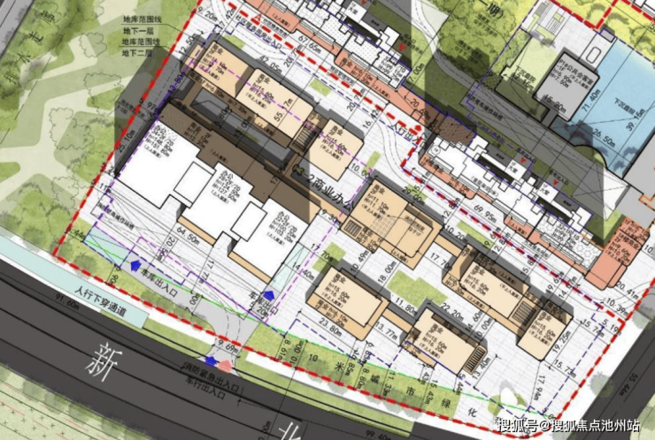 项目商业部分包含办公楼和部分商业街: