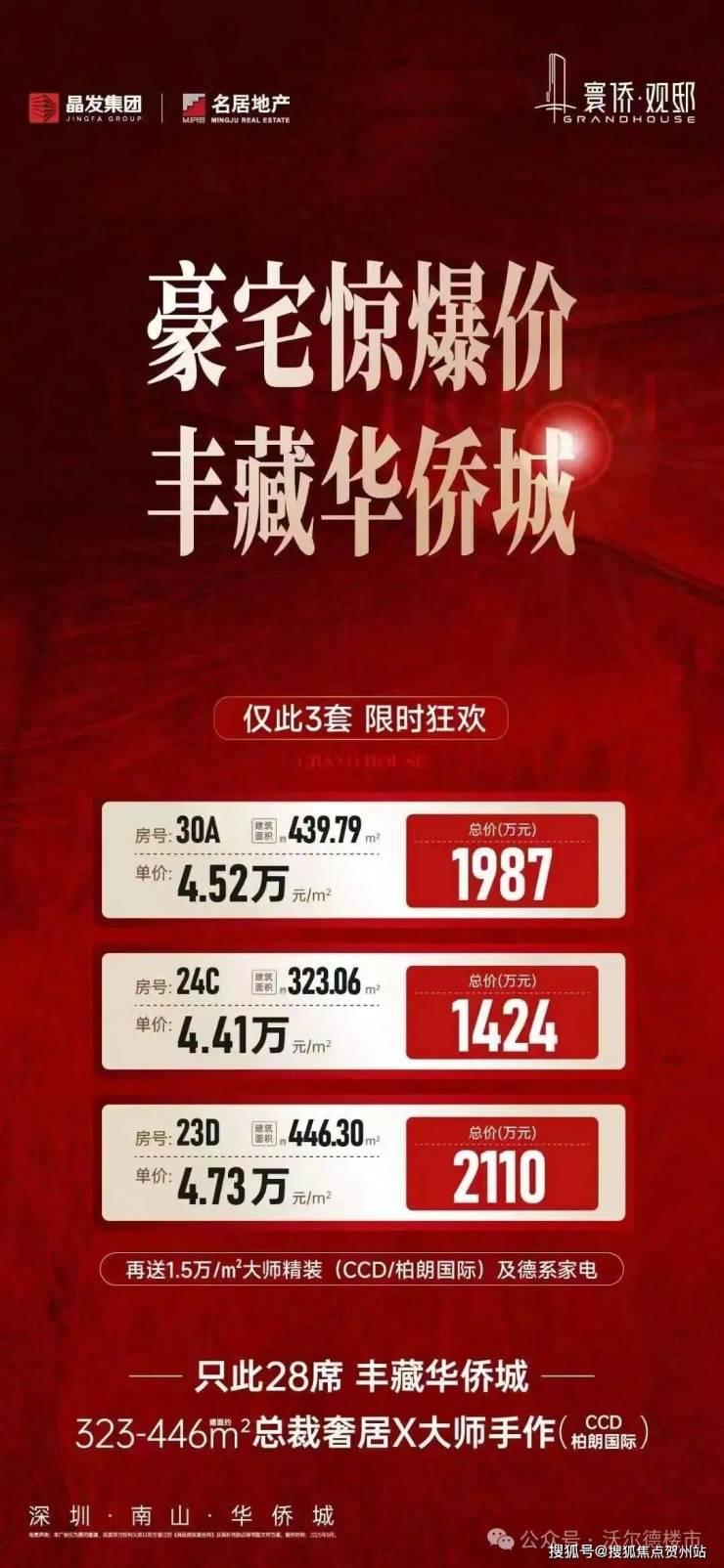 荟萃CCD、柏朗国际两大设计团队联袂匠造,以国际化视野,精研侨城湾芯云端新作,仅28席,位于建筑23-29层,全高区景观视野,建面约323-446㎡,纯粹大户云端居所。4款室内设计风格独特,尺度阔绰,兼顾细致实用,畅享舒适空间。