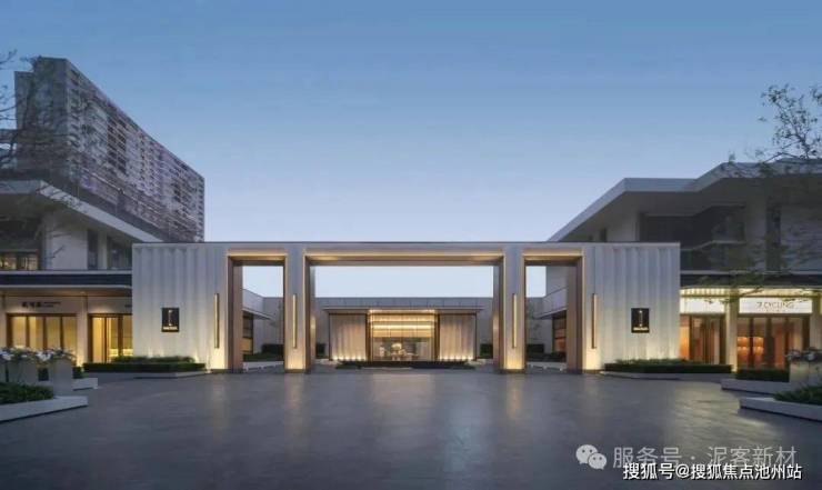 入口大门采用对称式布局,两侧以艺术感十足的泥客石景墙为引导,形成一条仪式感十足的归家动线,营造出温馨而奢华的氛围。