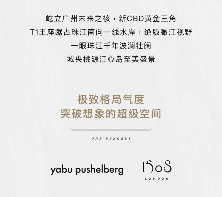 广州鹏瑞1号的T1楼王入市。目前靠近珠江-南区:3栋顶级公寓T1、T2、T3,与艺术中心T4组成北区:T5、T6(部分为顶奢酒店)其中:深湾会会所(T1-2-3的园林层组成)南区:320-2000平,主力户型450、550平,广州唯一300平起顶豪项目,圈层纯粹。