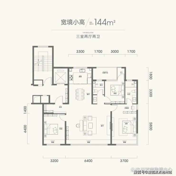 建筑面积约144㎡ 三室两厅两卫户型图