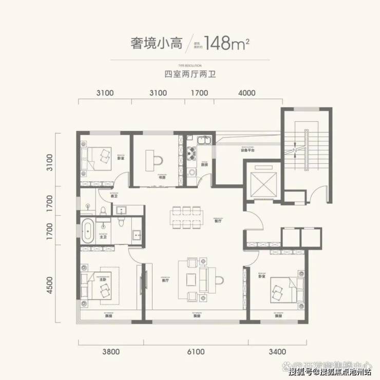 建筑面积约148㎡ 四室两厅两卫户型图