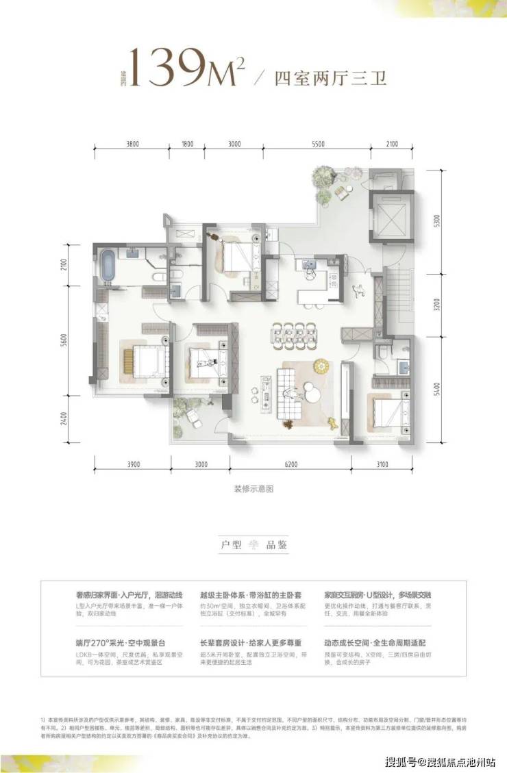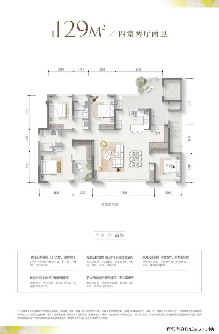 129平米四室双卫设计,尊享17.9平米独立入户空间,打造专属归家仪式感;U型阳光厨房与生活区域无缝衔接,形成流畅的双动线归家体验。宽敞的餐客厅开间拓展至约7米,营造出近40㎡的舒适大方厅。