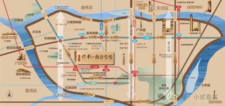 项目坐落于工业大道中,背靠珠江后航道,傲立于海珠新活力文商旅融合圈与广州市“首个”后航道服务型制造创新带交汇的核心地带,海珠后航道将成为海珠未来唯一连片开发的豪宅板块。