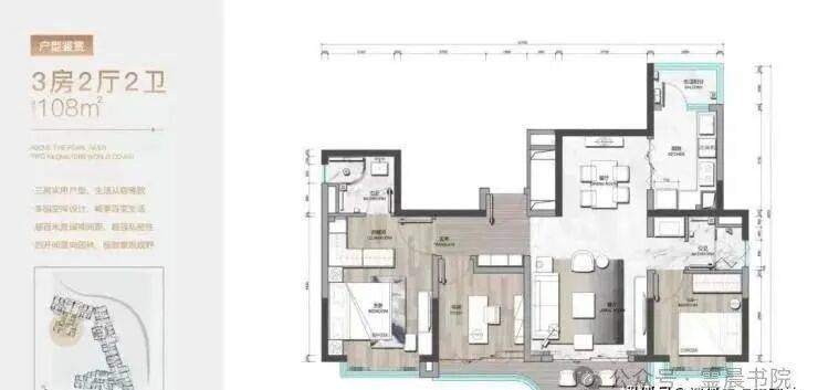 建面约110平三房户型
