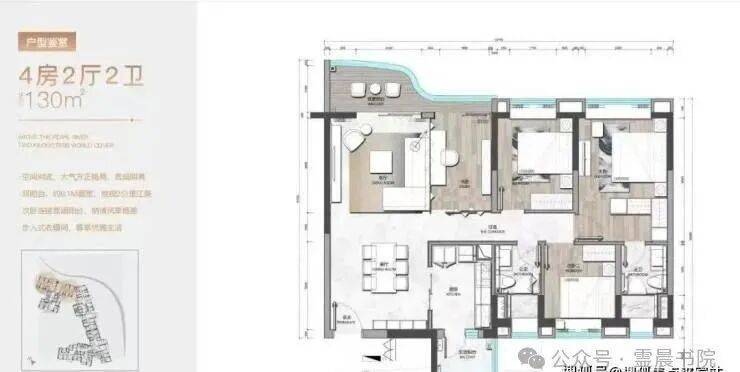 建面约130平四房户型