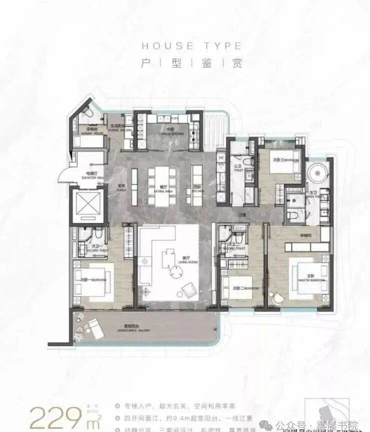 建面约229平四房户型