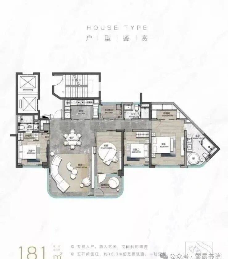 建面约181平四房户型